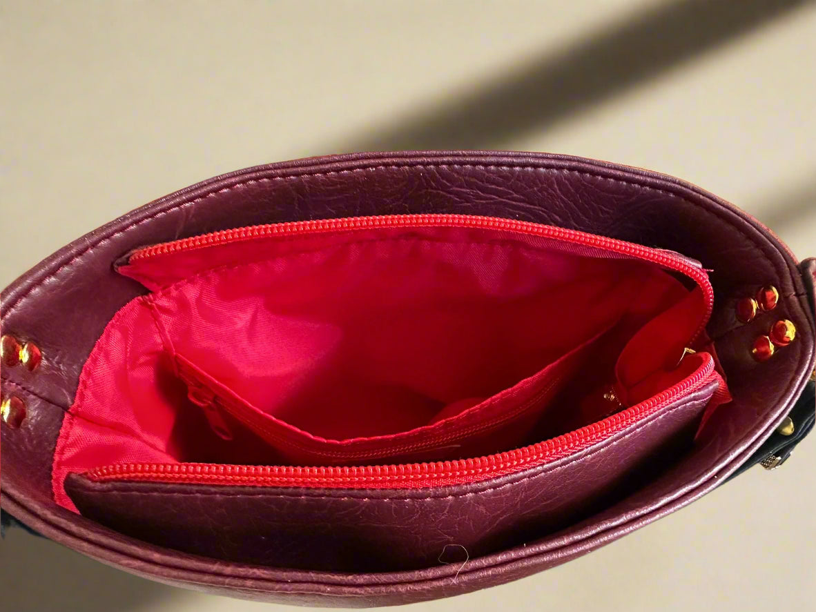 The Baby Belle Bucket Bag in black offers a blend of elegance and functionality. Featuring a stylish flap and signature two-strap handle accented with golden hardware, it combines classic and contemporary design. Inside, a recessed zipper closure ensures security, while the roomy main compartment accommodates all your essentials. An organized back lining panel includes both a zippered pocket and a slip pocket for easy access and storage. This bag is perfect for those who value refined style alongside practical features.