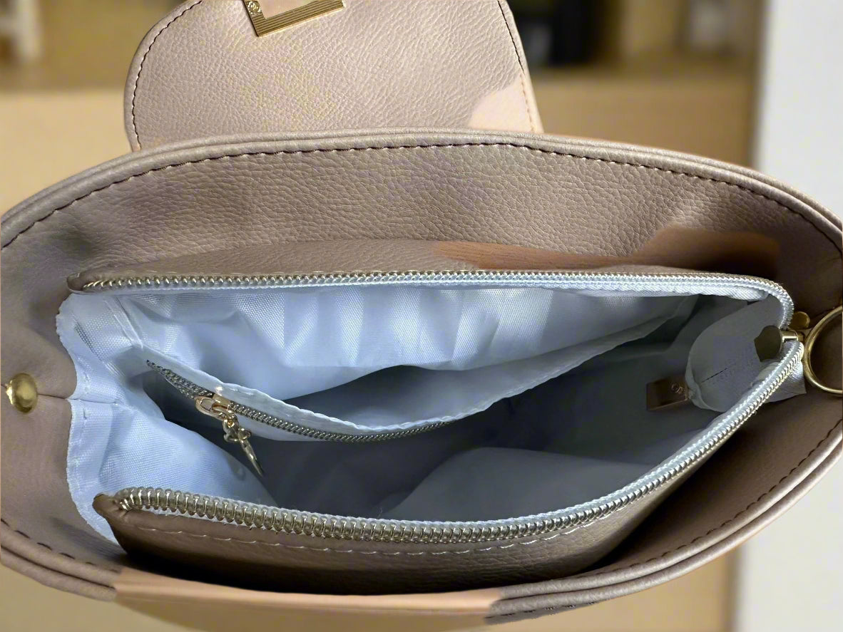 The Baby Belle Bucket Bag in white offers a blend of elegance and functionality. Featuring a stylish flap and signature two-strap handle accented with golden hardware, it combines classic and contemporary design. Inside, a recessed zipper closure ensures security, while the roomy main compartment accommodates all your essentials. An organized back lining panel includes both a zippered pocket and a slip pocket for easy access and storage. This bag is perfect for those who value refined style alongside practical features.