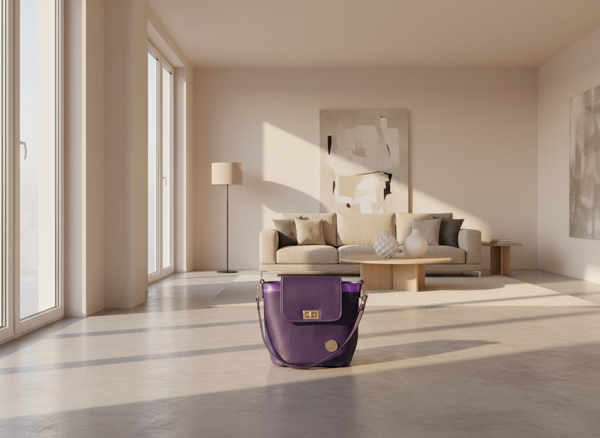The Baby Belle Bucket Bag in Purple offers a blend of elegance and functionality. Featuring a stylish flap, Real leather accents and signature two-strap handle accented with golden hardware, it combines classic and contemporary design. Inside, a recessed zipper closure ensures security, while the roomy main compartment accommodates all your essentials. An organized back lining panel includes both a zippered pocket and a slip pocket for easy access and storage. This bag is perfect for those who value refined style alongside practical features.